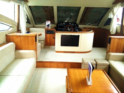主甲板艙內(nèi)設(shè)有沙龍,主駕駛室與沙龍合為一體,沙龍門為電動門,柚木茶幾、豪華皮質(zhì)沙發(fā),在游客休閑觀光的同時,還能觀看了解駕駛員駕船的情況。