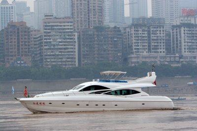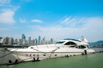 “陽光明珠”豪華游艇是洋世達(dá)斥巨資引進(jìn)的國際一流豪華游艇,該艇是按照國際大型游艇標(biāo)準(zhǔn)設(shè)計(jì)與建造的,她在外觀設(shè)計(jì)、內(nèi)部裝飾、設(shè)施功能等方面達(dá)到甚至超過國際豪華程度的游艇水準(zhǔn)。同時(shí),創(chuàng)下了多項(xiàng)國內(nèi)之最,首先她是國內(nèi)規(guī)格最大的游艇,其次是國內(nèi)游艇設(shè)計(jì)最前衛(wèi)的游艇,第三是國內(nèi)游艇配置與功能最強(qiáng)的游艇,第四是國內(nèi)船艇專利技術(shù)最多的游艇。該游艇船長24.10米,總寬5.43米,于2006年元月駛進(jìn)重慶。該艇船殼是國際新型復(fù)合材料玻璃鋼制造,增強(qiáng)材料為國際無堿短切纖維氈和無堿玻纖織物與高強(qiáng)縫編布,粘接劑是國際游艇通用的乙烯基不飽和樹脂與日本聚脂樹脂,表機(jī)采用荷蘭耐水膠衣和耐磨材料制作。在整個(gè)建造過程中,采用鋼模成型,并嚴(yán)格控制溫度、濕度和成型時(shí)間。整個(gè)船殼重量輕、強(qiáng)度高、質(zhì)量好,完全滿足長江復(fù)雜水流航行的要求,而且外觀潔白、華麗、氣派。